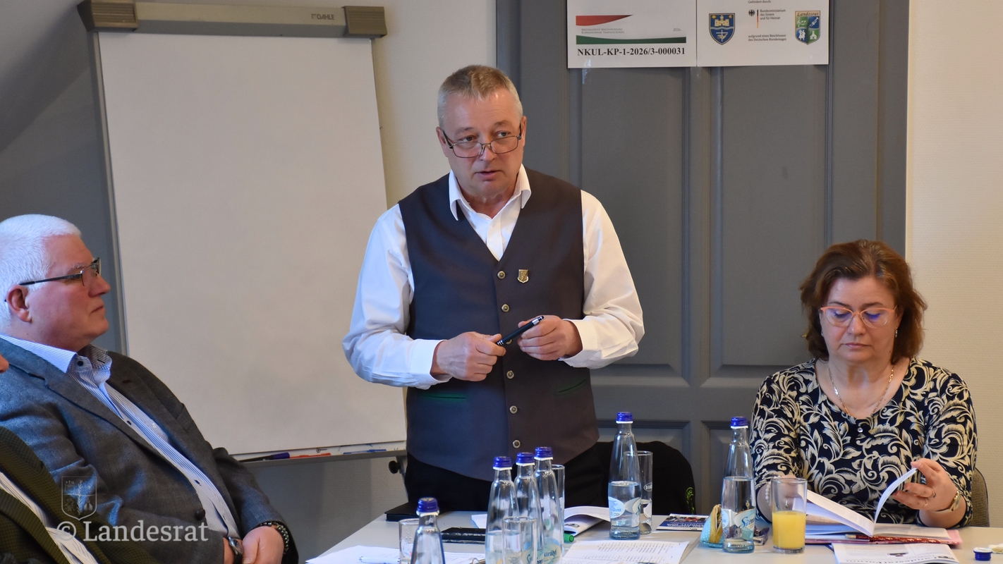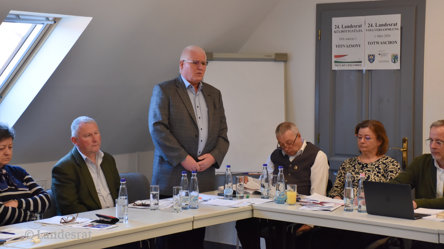 Az elnök beszámolójában kihangsúlyozta, hogy mennyire fontos, hogy a hagyományőrzés könnyed, közösségi élményként jelenjen meg a hétköznapokban és ne telepedjünk rá a hagyományokra. Nemzetiségi örökségünk természetes megélése kultúrkincsünk tovább élésének biztosítéka. Szintén fontos feladat, hogy a jelen énközpontúságát ellensúlyozzuk a közösség megtartó erejével, a Landesrat egyik alapértékével. A Landesrat missziója, hogy stabil igazodási pontot és szakmai segítséget nyújtson tagcsoportjainak hagyományaik hiteles megéléséhez, tovább örökítéséhez.