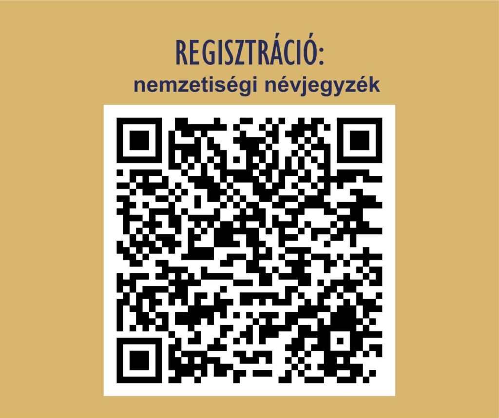 Regisztráció az alábbi QR kód beolvasásával vagy a ezen a linken: Nemzetiségi névjegyzékbe vétel iránti kérelem